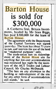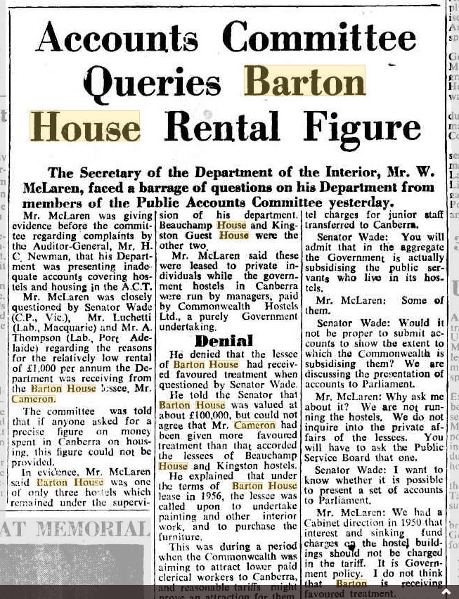 Canberra Times, 11 May 1960 Just £1000 per annum for the lease? Mr Cameron must've made a fortune out of that place. I mean I paid more than that in a year for just a share-room!