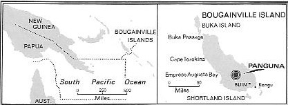 Of all Papua New Guinea's larger islands, Bougainville is the furthest away from Port Moresby. And Buin, on its south coast, is both the most distant major settlement from the capital and the closest to the Solomon Islands. In fact so close are the Solomons to Bougainville that people of Shortland Island often cross the straits to shop and attend hospital in Buin. In the past, headhunters from New Georgia in the Solomons regularly raided the Buin people and finally drove them inland where they now live. Some of the raiders stayed and became chiefs, a few of their tall descendants still live in the Buin area. As in Kieta and Buka, the first white men to settle on the flat Buin coast were Marist missionaries who were based on nearby Poporang Island in the Solomons. In 1903 a Father Perpezar erected a small hut at the foot of Kangu Hill. He died six weeks later of malaria but the mission had begun. From there it spread right through Buin into the Siwai and today has a large following. Roughly the same time as Father Perpezar's visit, a Chinese trader, Chong You, erected a trade store on the beach at Kangu. He later left for Buka but today there are a number of such trade stores in Buin. In 1905 the Germans opened their first district office at Kieta but contact with Buin was confined to a few patrols into the area to put down tribal disturbances. In 1914 Australia took over in the territory and opened a patrol post at Kangu Beach. Life proceeded undisturbed in the Buin area for another 30 years before the Japanese invasion. The Japanese turned Buin into a huge military base, taking advantage of the nearby Tonolei HArbour as anchorage for their fleet. They built airstrips and linked them by road and railway line. Eighteen months later Americans landed 70 miles up the west coast at Torokina and Australian troops began moving towards Buin. Surrender came before Buin was reached but tremendous damage and loss of life had been caused by aerial bombardment and lack of food. Immediately work began in bringing the area back to normal. The Japanese railway to the Buin airfield was turned into a road and the airfield was retained for commercial traffic. Inland Buin was selected as a preferable spot to the Kangua coastal area and slowly the inland settlement developed at the expense of the coastal area. Today Buin is the 40th biggest town in the territory containing 50 Europeans and 613 local people. It has trade stores, two guest houses, two clubs and a relatively large administration work force. The road system extends along the west coast as far as Sikoreva in Nagovisi. By June Bana Council hopes to have open a three mile stretch linking the road from Kieta to the Jaba River with the one from Sikoreva to Buin. This means cocoa producers in South Bougainville will be able to truck their produce to Kieta instead of using the expensive sea route. Courtesy PANGUNA-The Voice of Bougainville Copper |