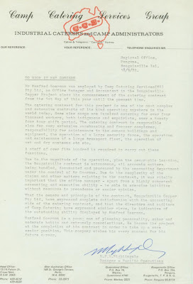 contract with the Camp Catering Services Group almost forty years ago, sent me this message: "Oh I thought that I better let you know that I