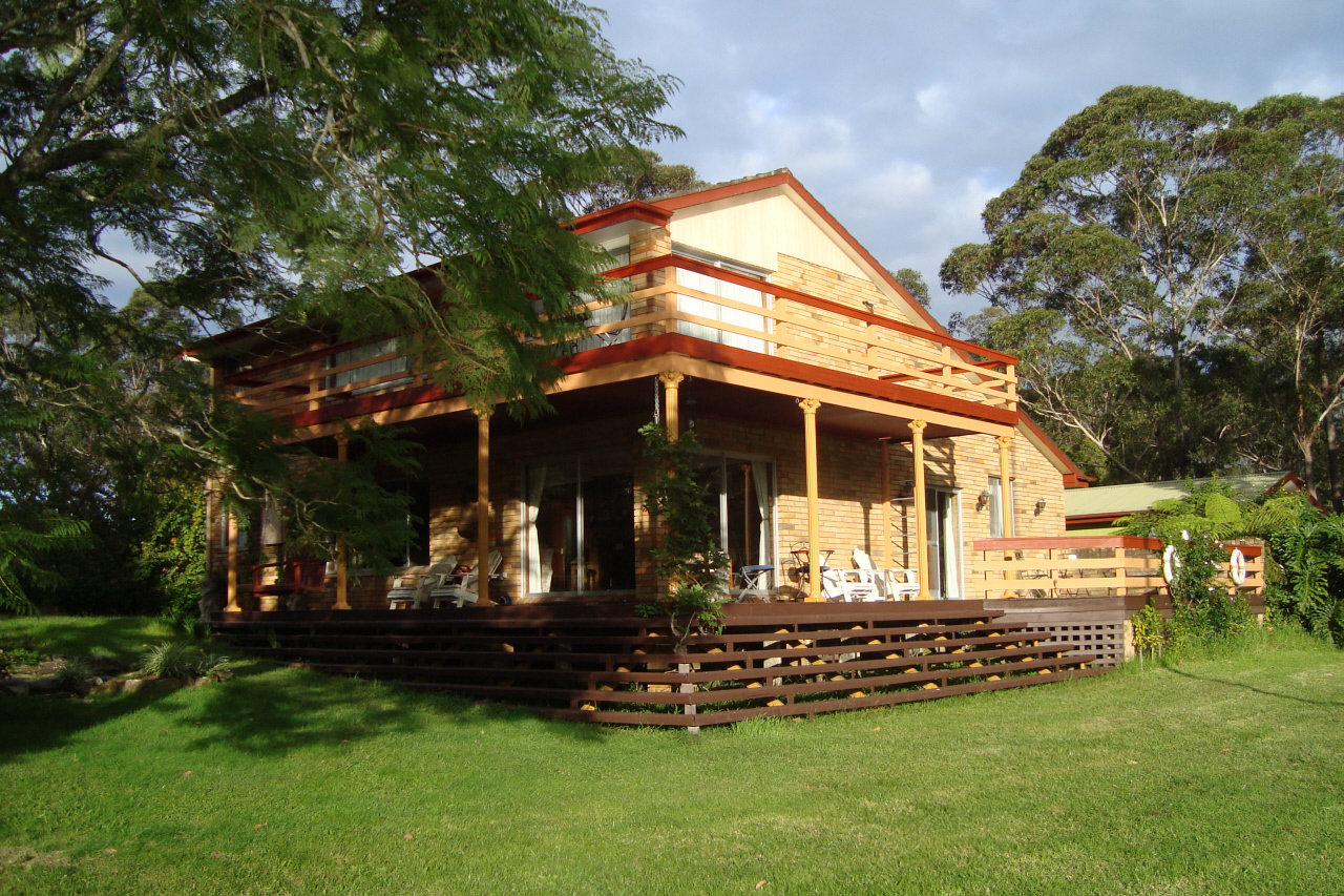and descends with sweeping steps onto the lawn and down to the river and jetty. The huge modern kitchen with stone benchtops has recently been fully renovated at a cost of over $20,000. A large breezeway, with wood-panelled walls and ceramic
